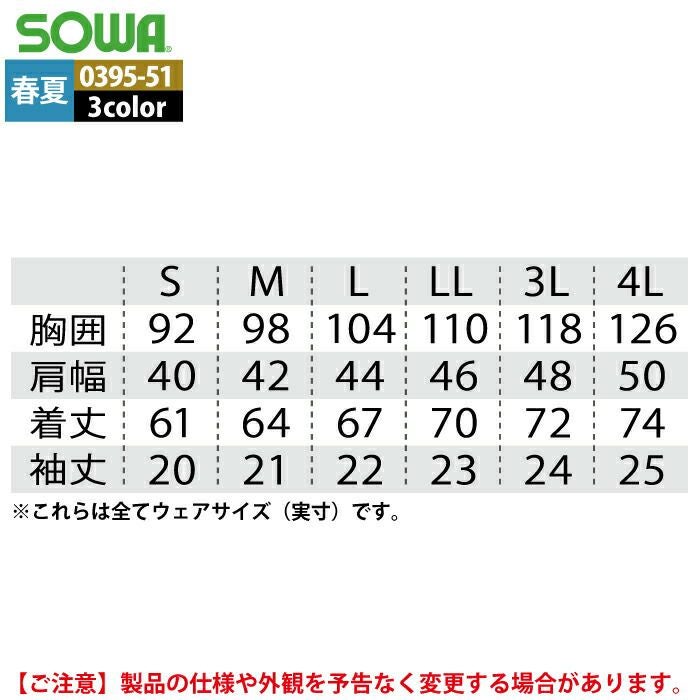 桑和 SOWA 作業服 作業着 作業ズボン 桑和 SOWA 作業服 0395-51 半袖ポロシャツ 4L 作業服 春夏用