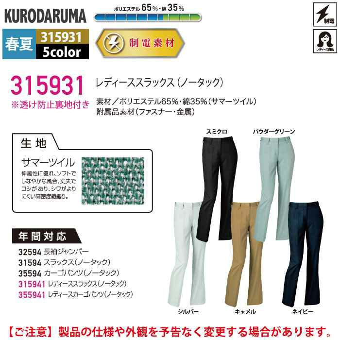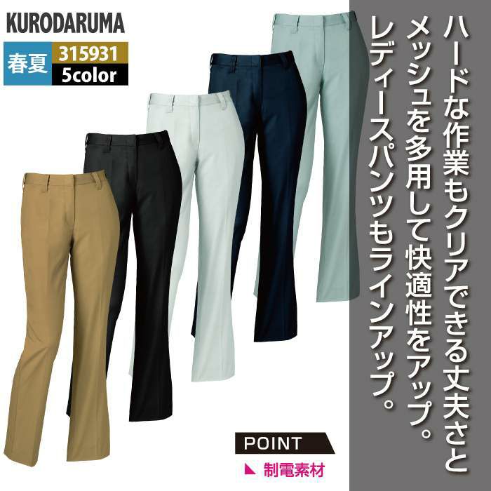 作業服 作業着 クロダルマ 作業服 春夏用 315931 レディーススラックス 61-80