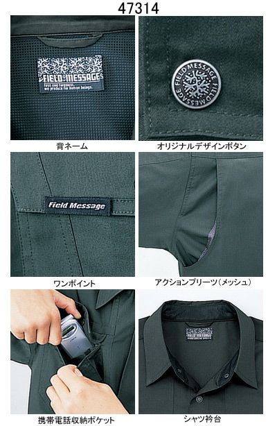 作業服 作業着 自重堂 作業服 47314 半袖シャツ S-LL 春夏用 作業着 メンズ ワークウェア jichodo かっこいい
