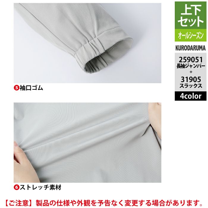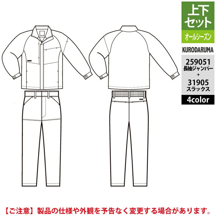 作業服 作業着 春夏 クロダルマ 作業服 上下セット 春夏 259051 長袖ジャンパーS-3L と 31905 スラックス SS-3L 作業着 作業ズボン