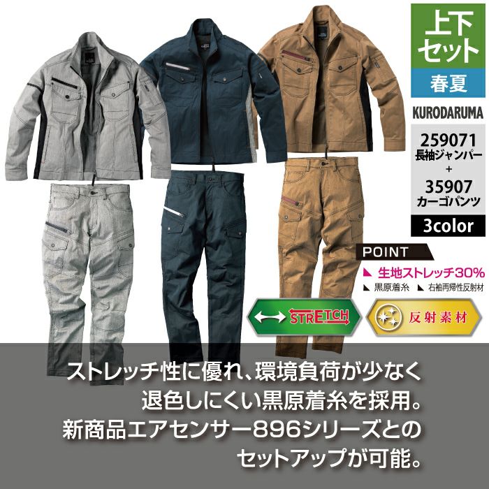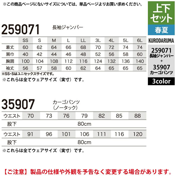 作業服 作業着 春夏 クロダルマ 作業服 上下セット 春夏 259071 長袖ジャンパーSS-3L と 35907 カーゴパンツ 70-10 作業着 作業ズボン